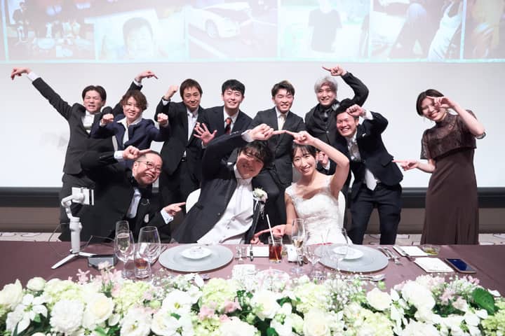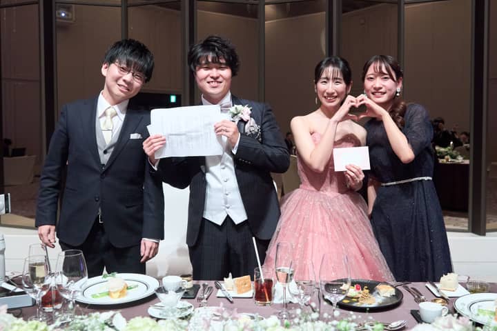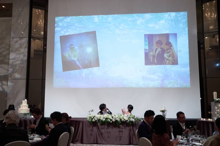 「ゲストの方に楽しんでもらおう!」というところでした。美味しいお料理を食べてもらったり、参加型のものをしたりしたいねと話し合いました。「フォトオブザデイ」という、式中に撮った写真を送るとスクリーンに映し出されるものを取り入れたところ、とても喜んでもらえました。また、お話出来る時間をたくさん設けたかったので、フリータイムを作ってもらったり、キャンドルサービスでテーブルを回ったりしました。