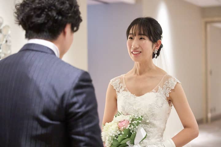 式をあげるか迷っていましたが、見学だけでもということで、それぞれの両親の家からアクセスがいい品川という場所であったことや、ホームページで見た式場の写真が綺麗だったこともあり、マリオットさんに見学に行くことにしました。スタッフさんがとても丁寧に式場を案内してくださり、気持ちが前向きになりました。大きな決め手だったのは、お料理の試食でした!特にお肉が美味しくて、「ここで結婚式をしよう!」と決めました。