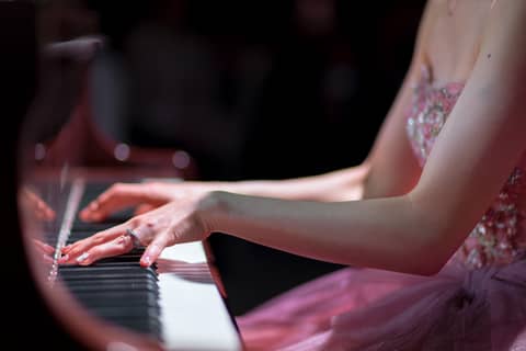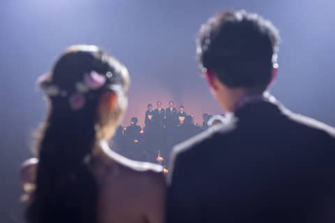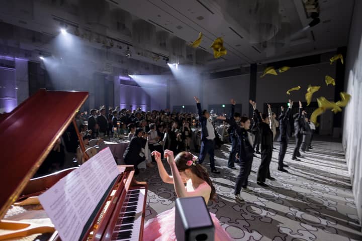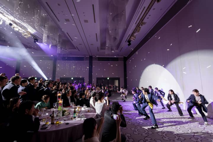 余興です。新婦がピアノを弾き、新郎とその友人たちがその音に合わせてダンスを披露しました。照明や音響など当日の朝まで綿密に打ち合わせを行い、本番は大成功でした!私たちのイメージを完璧に形にしてくださったスタッフさんには感謝してもしきれません。